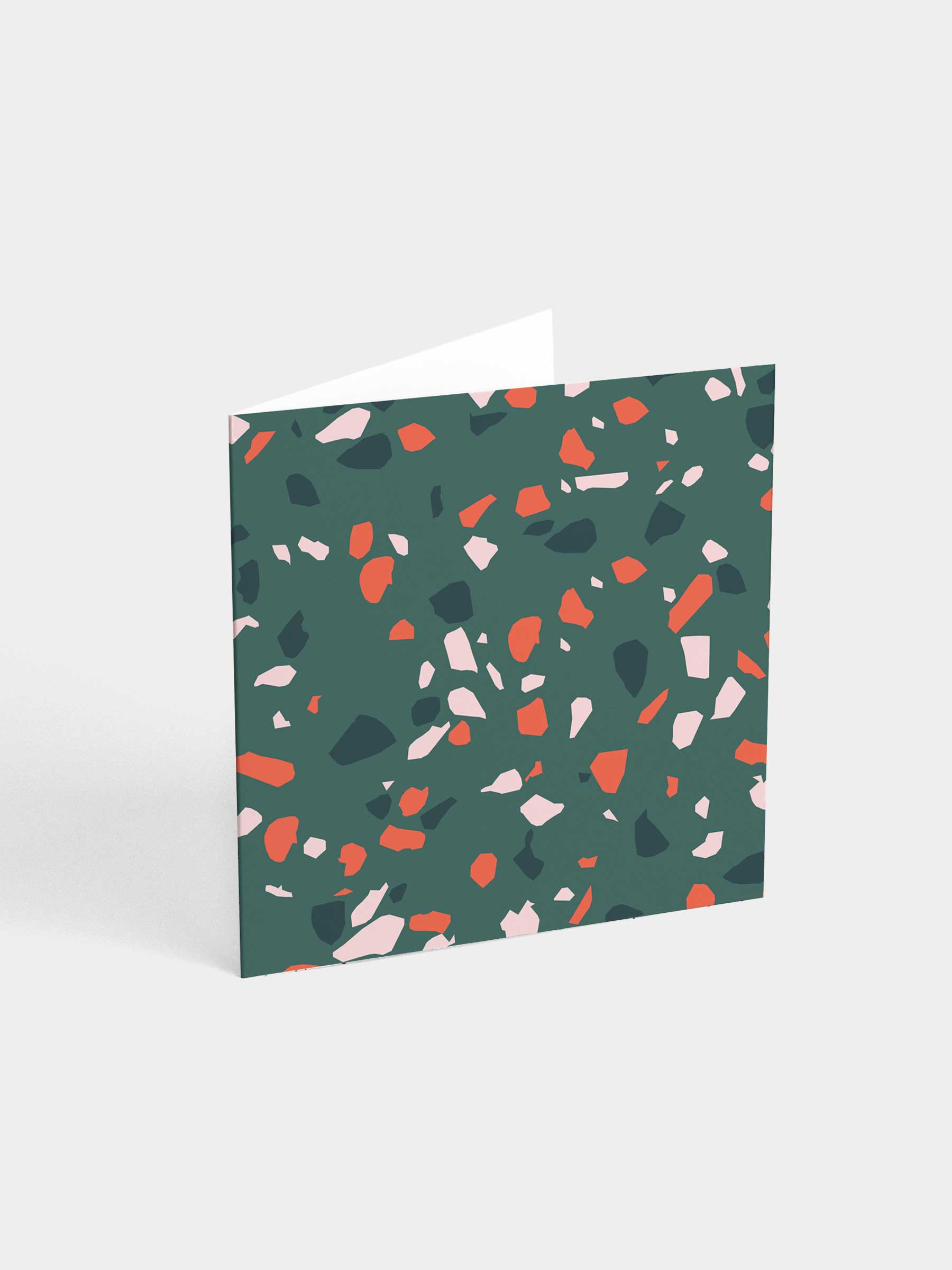 Terrazzo is a single folded square greeting card printed on a smooth uncoated recycled paper. The set of 2 cards comes with a black and grey square envelope. Handcrafted with love by Polish creative duo Suska & Kabsch.